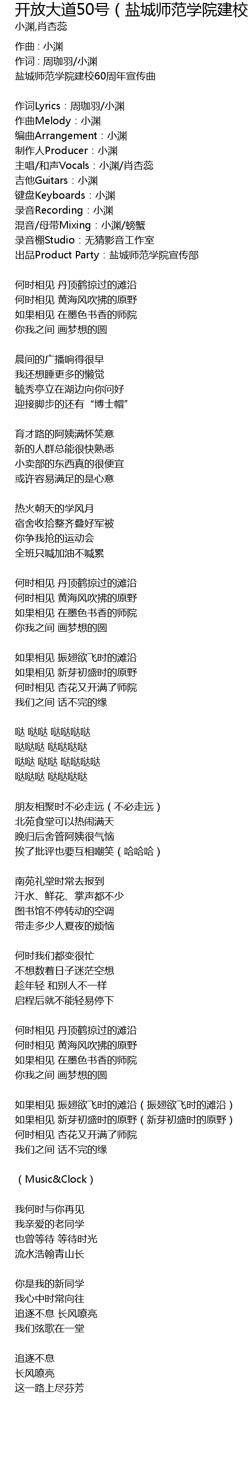 | [00:12] | 出品Product Party:盐城师范学院宣传部 |