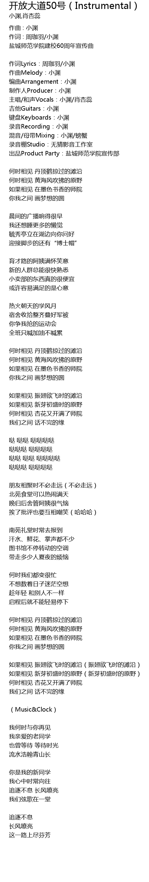 | [00:12] | 出品Product Party:盐城师范学院宣传部 |
