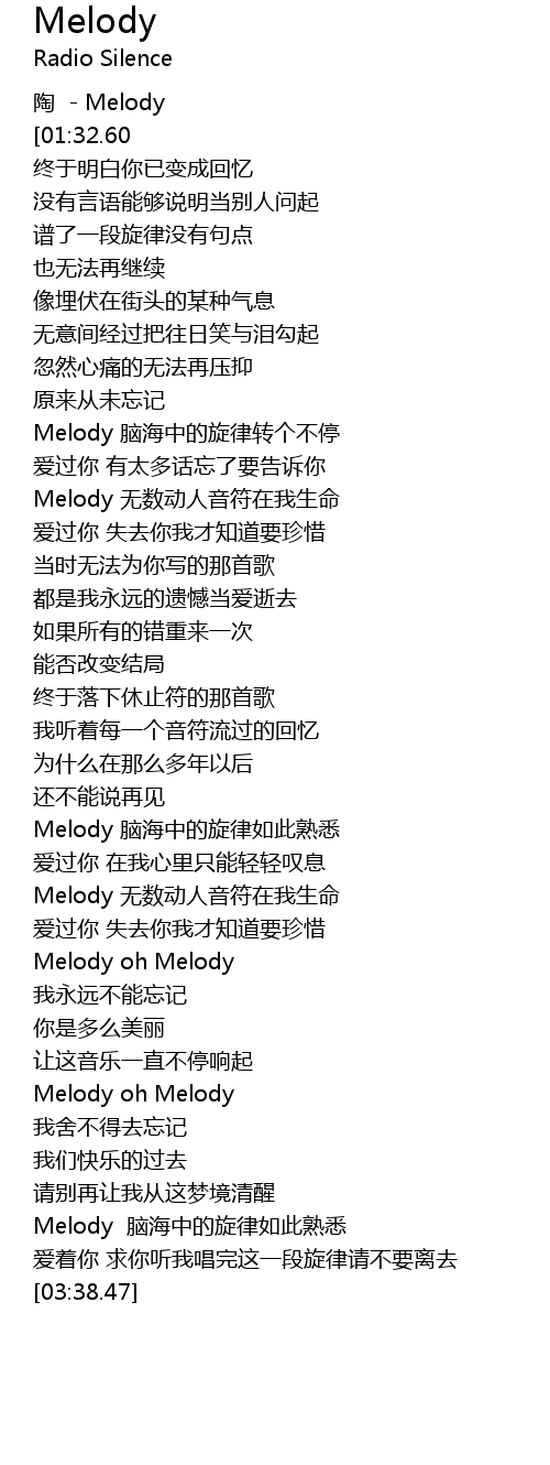 | [03:01.69] | Melody oh Melody |