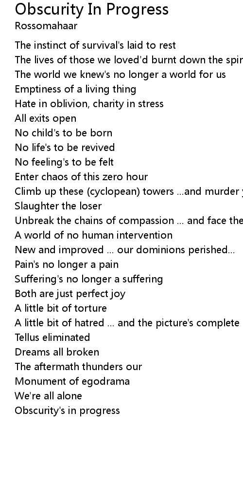 Obscurity's in progress |