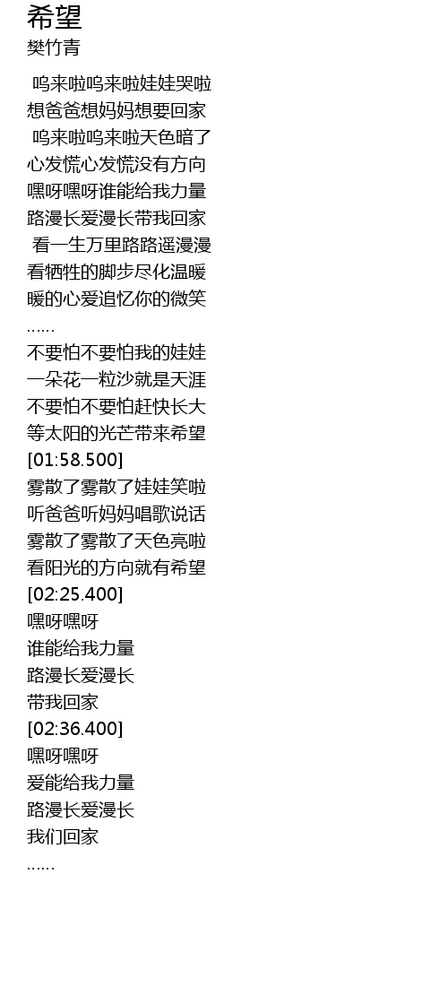| [00:57.500] | 路漫长爱漫长带我回家 |