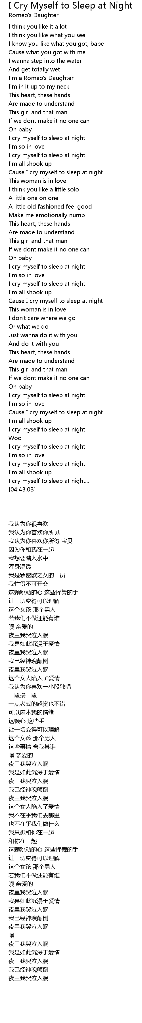 Cause I cry myself to sleep at night |