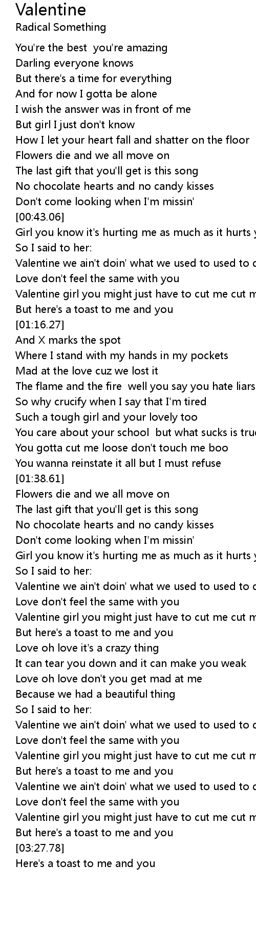 Valentine girl you might just have to cut me cut me loose |