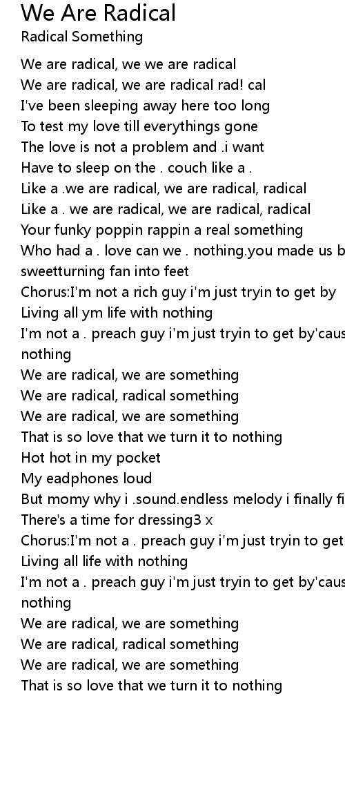 I'm not a . preach guy i'm just tryin to get by'cause we are radical, we are nothing