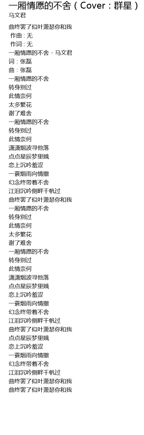 | [00:03.168] | 一厢情愿的不舍 - 马文君 |