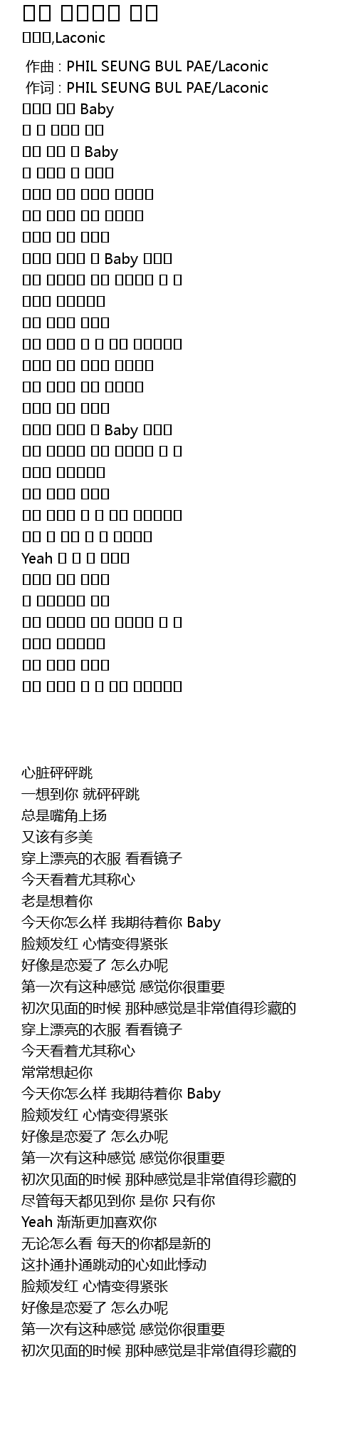 | [00:01.000] | 作词 : PHIL SEUNG BUL PAE/Laconic |