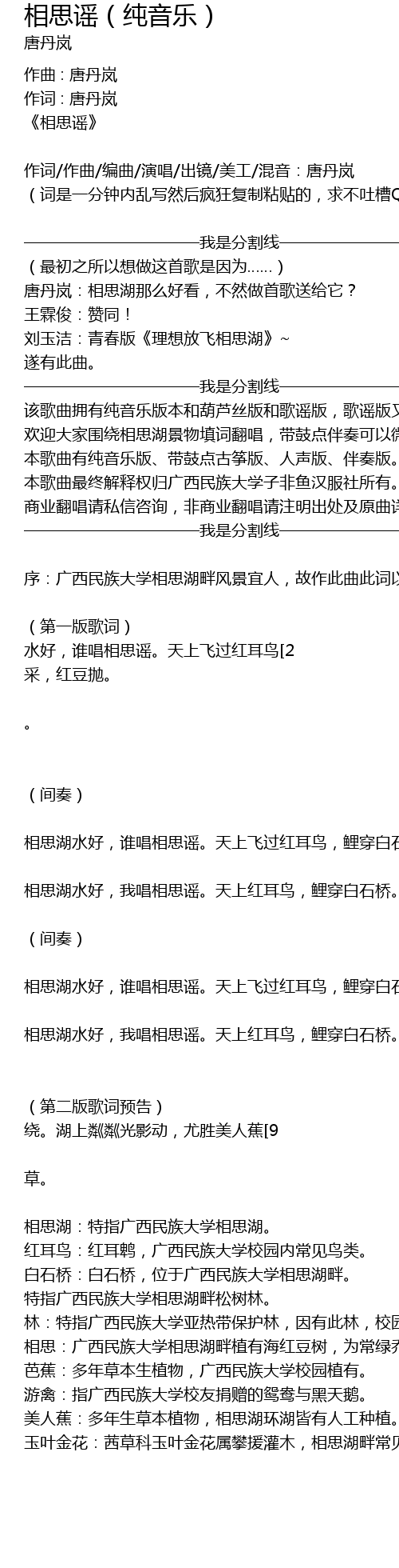 欢迎大家围绕相思湖景物填词翻唱,带鼓点伴奏可以微博@唐丹岚私信我索要~