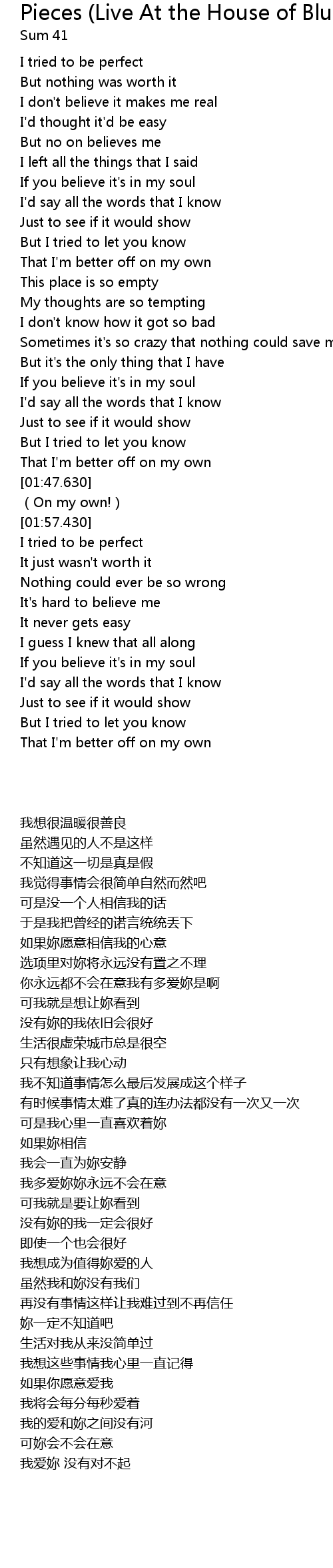 | [01:12.970] | Sometimes it' s so crazy that nothing could save me |