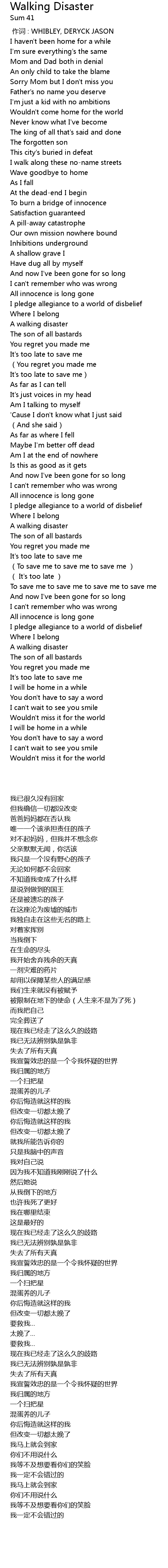 | Song | Walking Disaster |