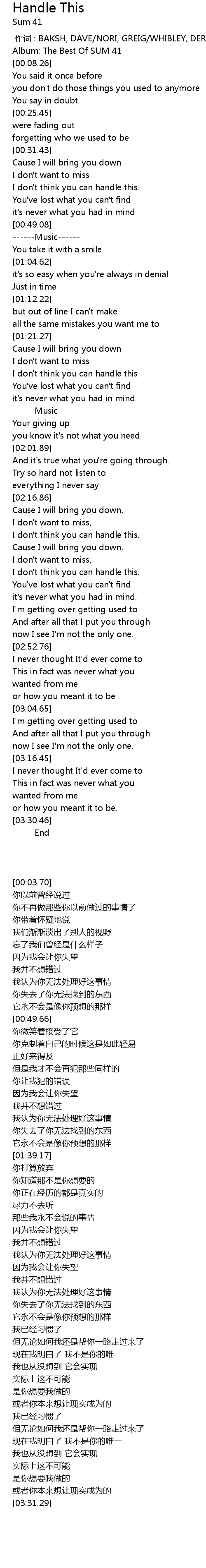 | [00:03.70] | Album: The Best Of SUM 41 |