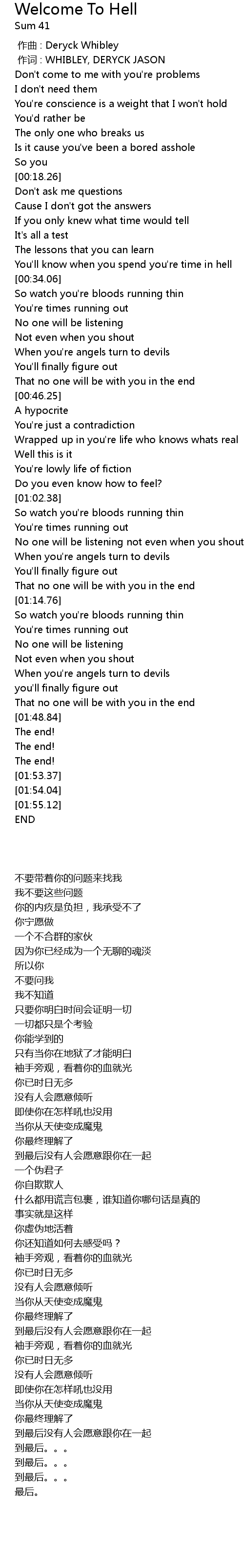 | [00:31.95] | You' ll know when you spend you' re time in hell |