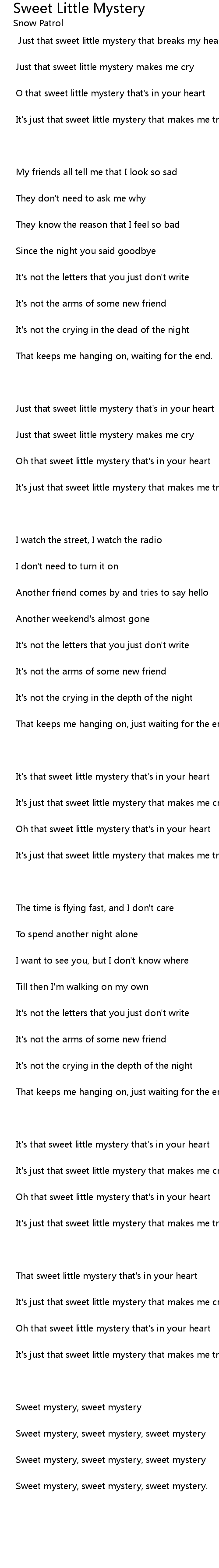 Sweet mystery, sweet mystery, sweet mystery |