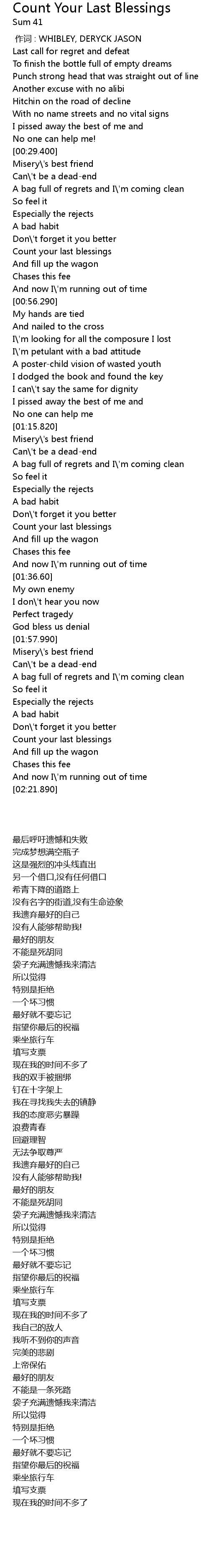 | [00:41.600] | Count your last blessings |