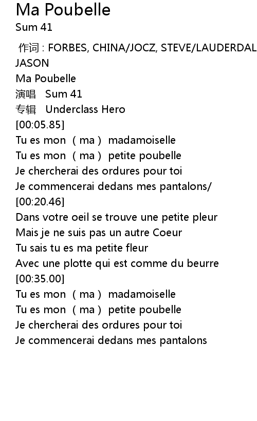 | [00:39.35] | Tu es mon ma petite poubelle |