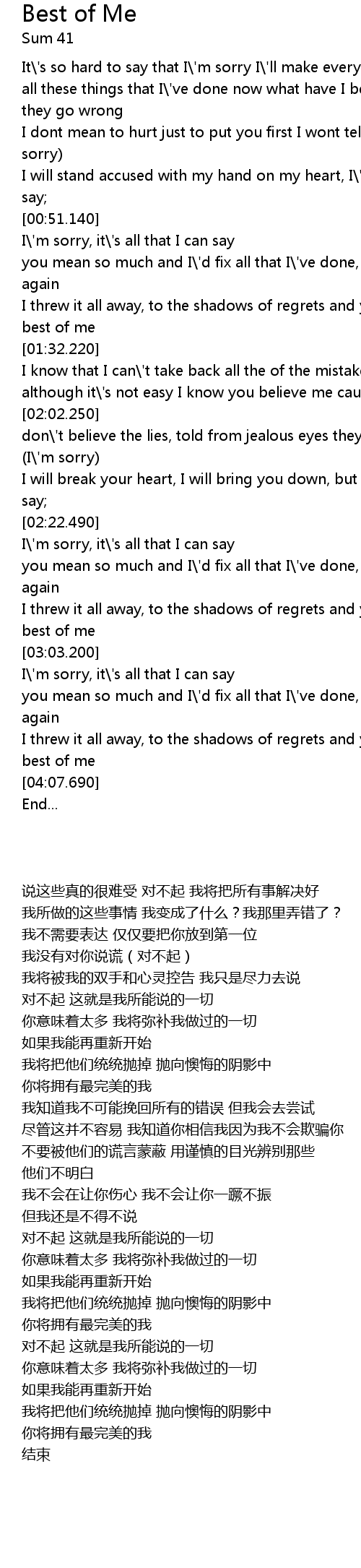 I\'m sorry, it\'s all that I can say |