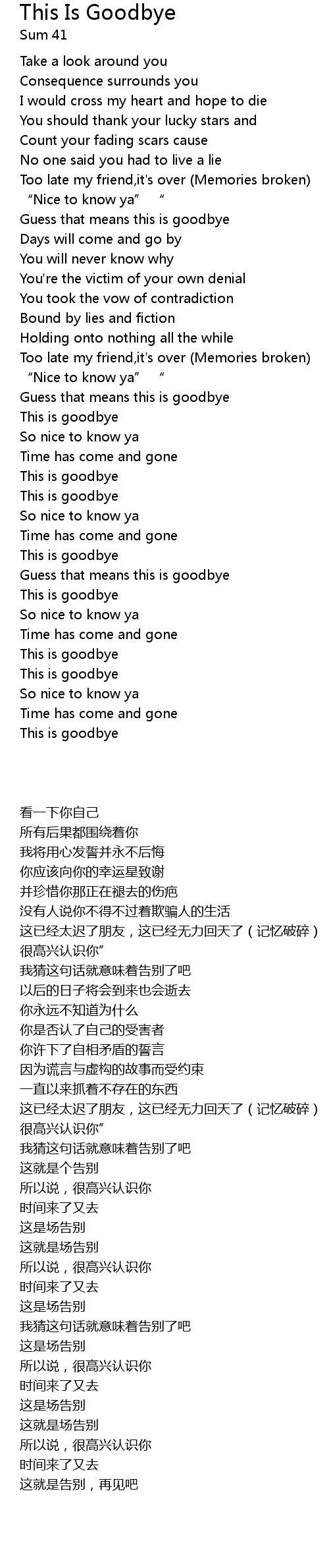 | [00:38.17] | Guess that means this is goodbye |