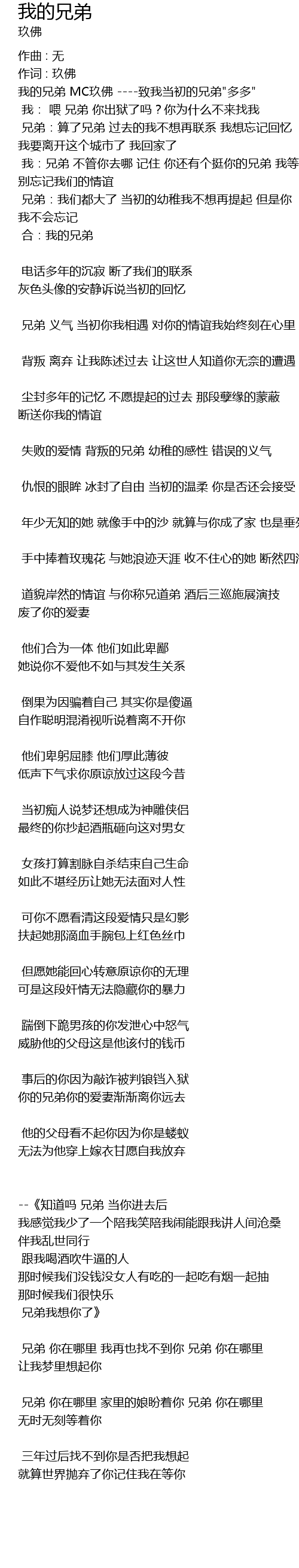 | 我的兄弟 MC玖佛 ----致我当初的兄弟"多多" | |