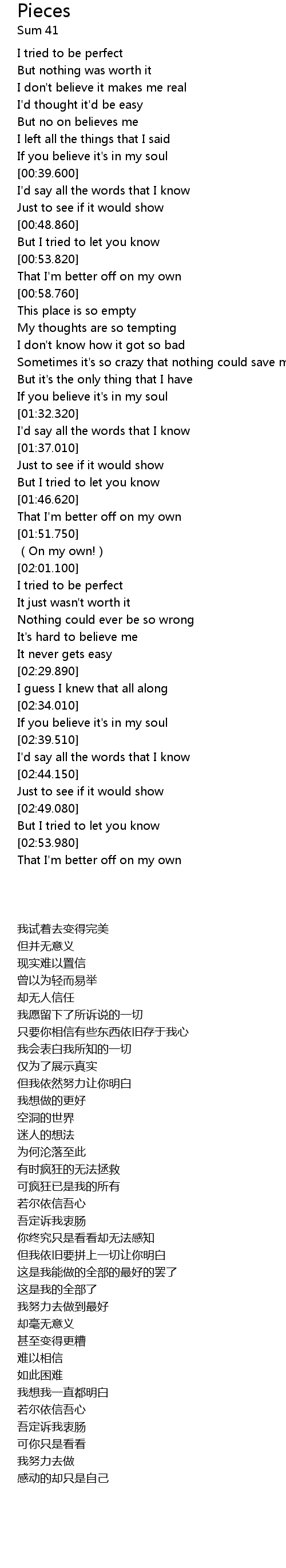 | [01:17.960] | Sometimes it' s so crazy that nothing could save me |