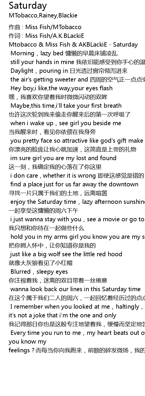 | [01:50] | wanna look back our lines in this Saturday time 在这个属于我们二人的周六,一起回忆着经历过的点点滴滴 |