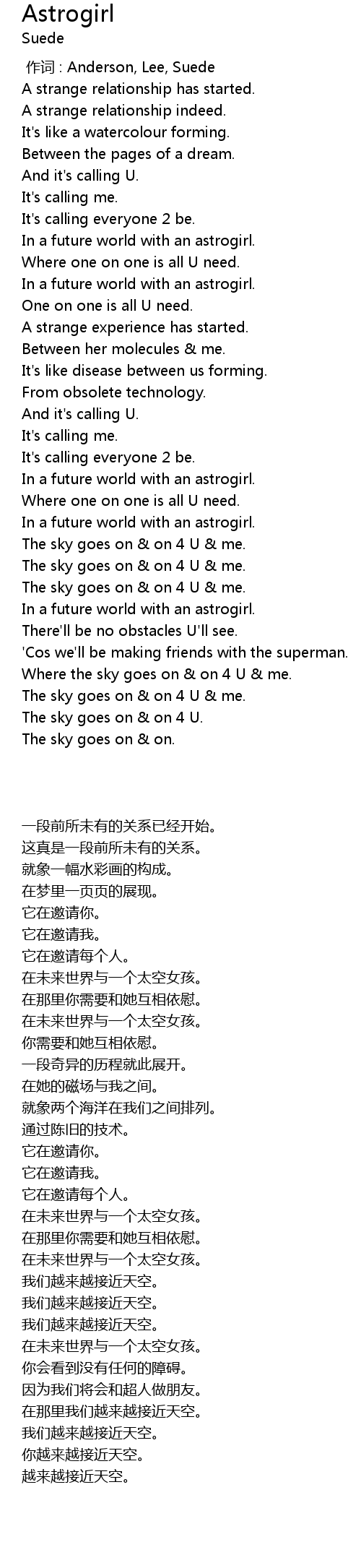 | [00:00.00] | 作词 : Anderson, Lee, Suede |