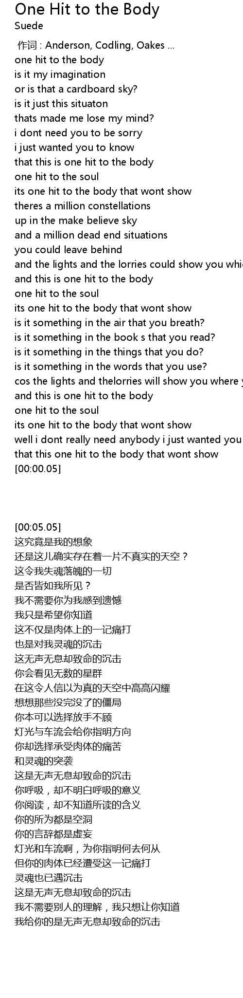 | [00:05.05] | one hit to the body |
