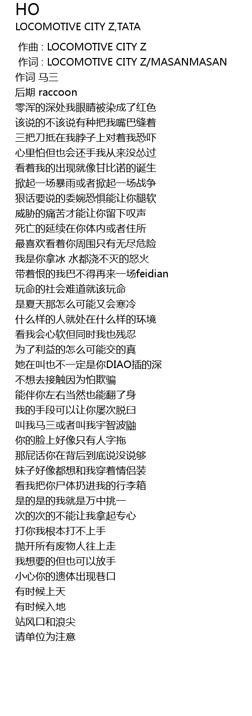 | [00:01.000] | 作词 : LOCOMOTIVE CITY Z/MASANMASAN |