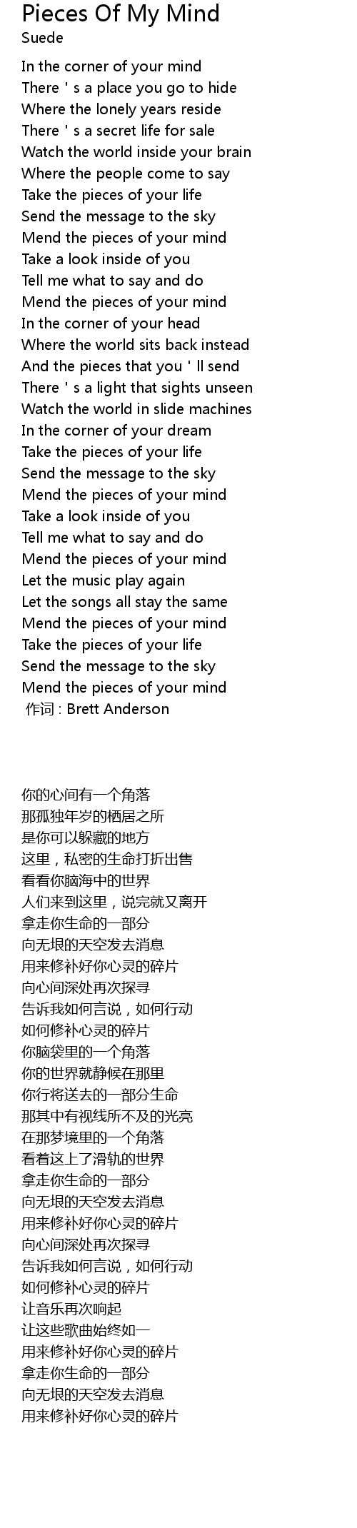 | [00:00.00] | 作词 : Brett Anderson |