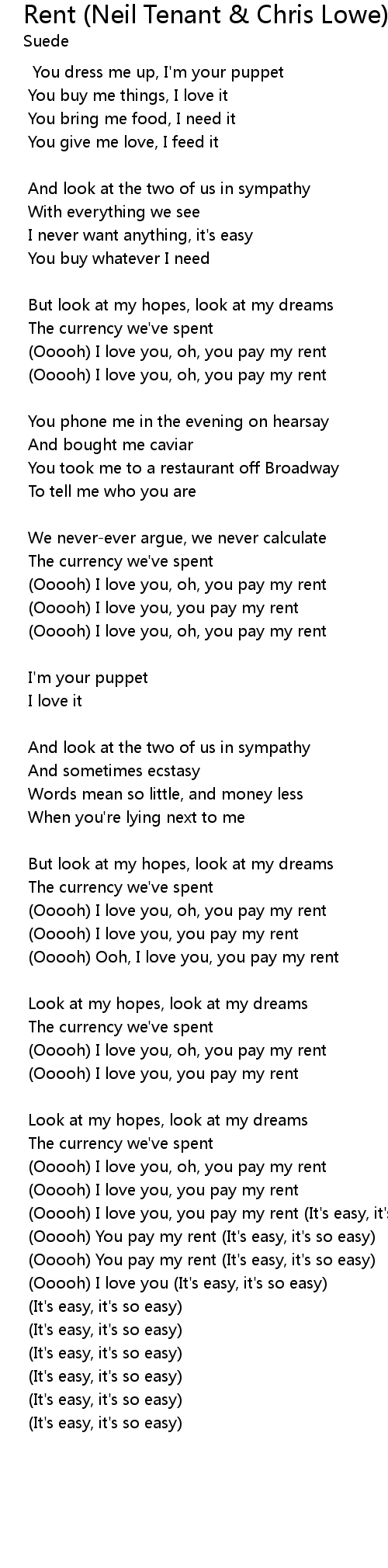 Rent (Neil Tenant & Chris Lowe) Lyrics