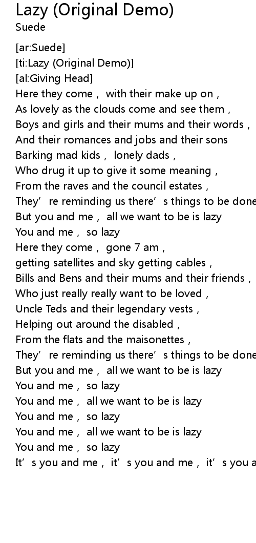 | [00:45.45] | But you and me, all we want to be is lazy |