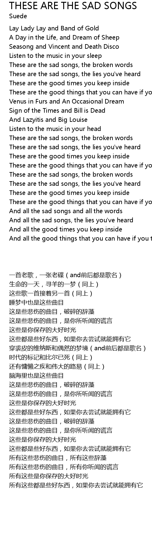 THESE ARE THE SAD SONGS Lyrics