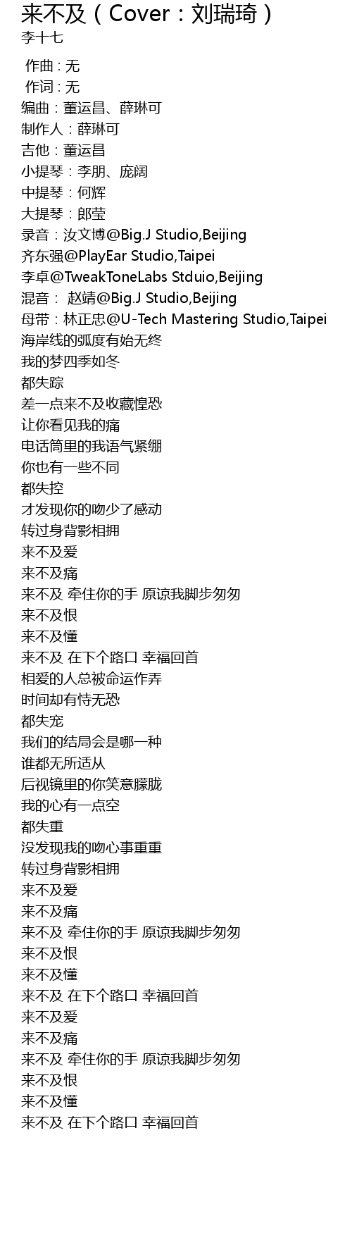 | [01:35.360] | 来不及 在下个路口 幸福回首 |