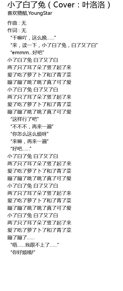 | xiǎo le bái le tù bái le yòu le bái | |