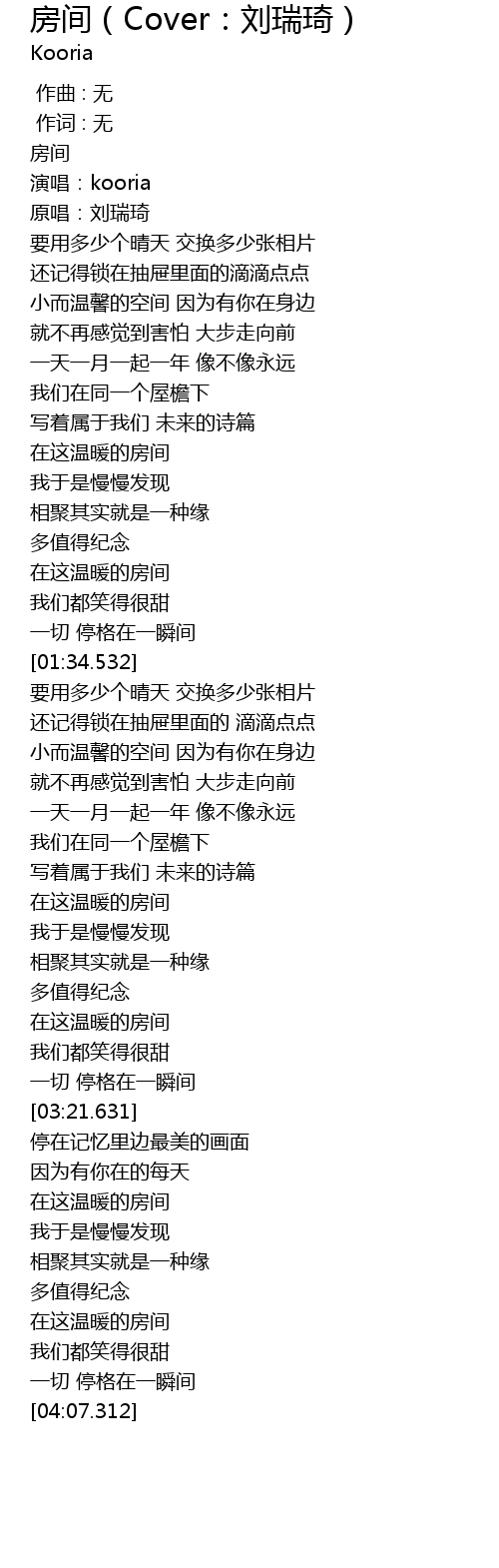 | [00:05.449] | 演唱:kooria |