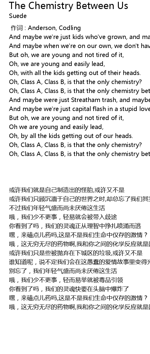 | [02:40.01] | Oh, Class A, Class B, is that the only chemistry between us? |