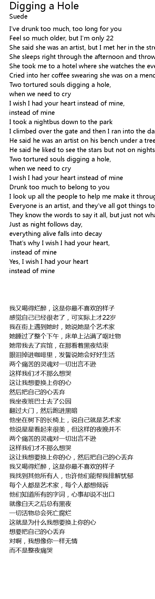 | [01:47.74] | Two tortured souls digging a hole, |