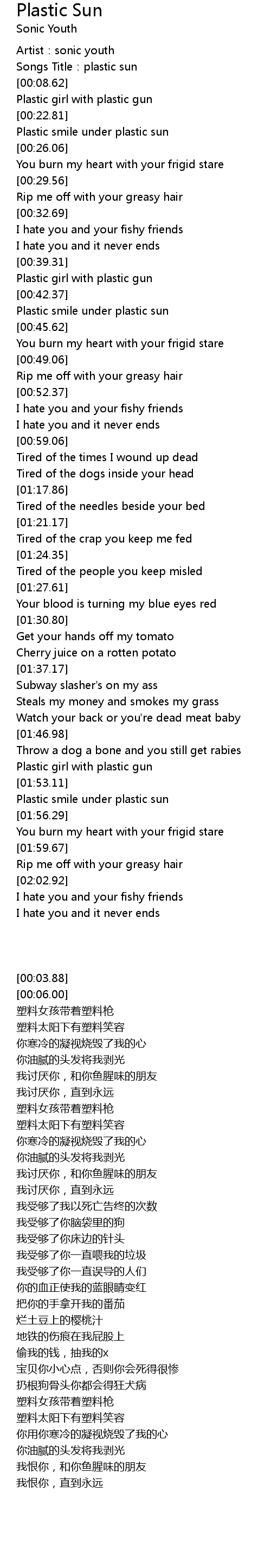 | [00:06.00] | Songs Title:plastic sun |