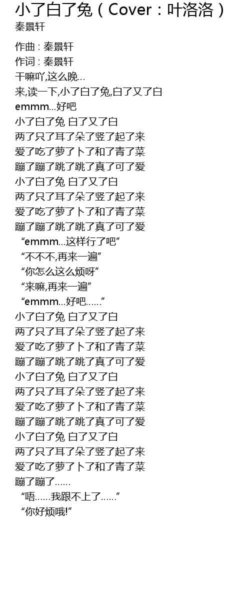 | lái, dú yī xià, xiǎo le bái le tù, bái le yòu le bái | |
