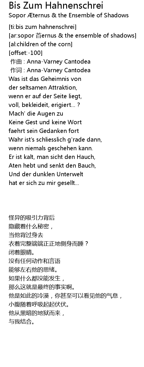 | [00:01.00] | 作词 : Anna-Varney Cantodea |