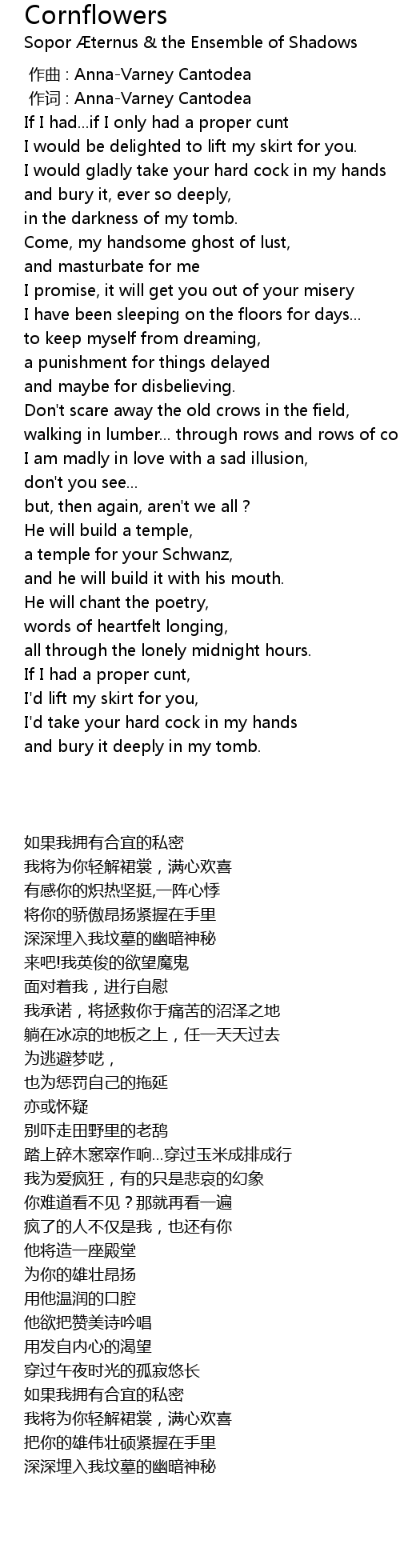 | [00:01.00] | 作词 : Anna-Varney Cantodea |