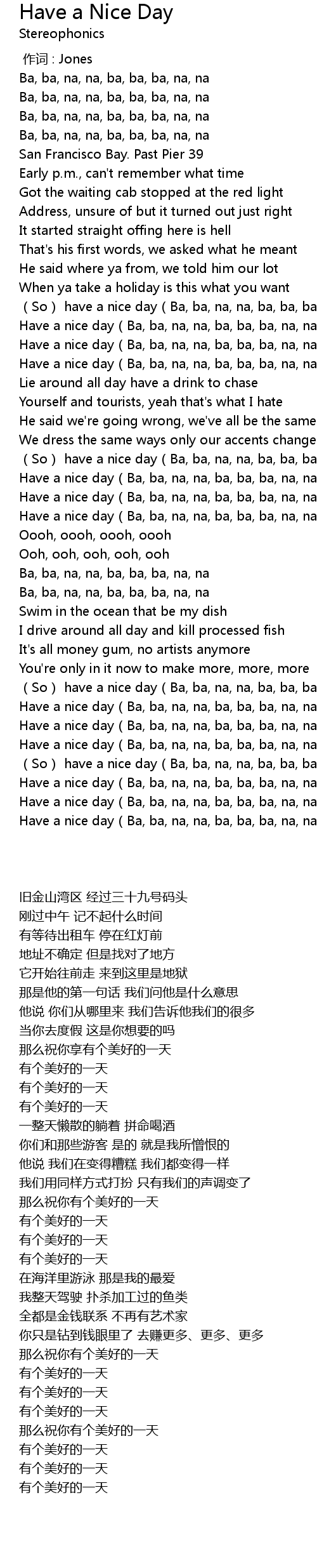 | [01:42.090] | (So) have a nice day(Ba, ba, na, na, ba, ba, ba, na, na) |