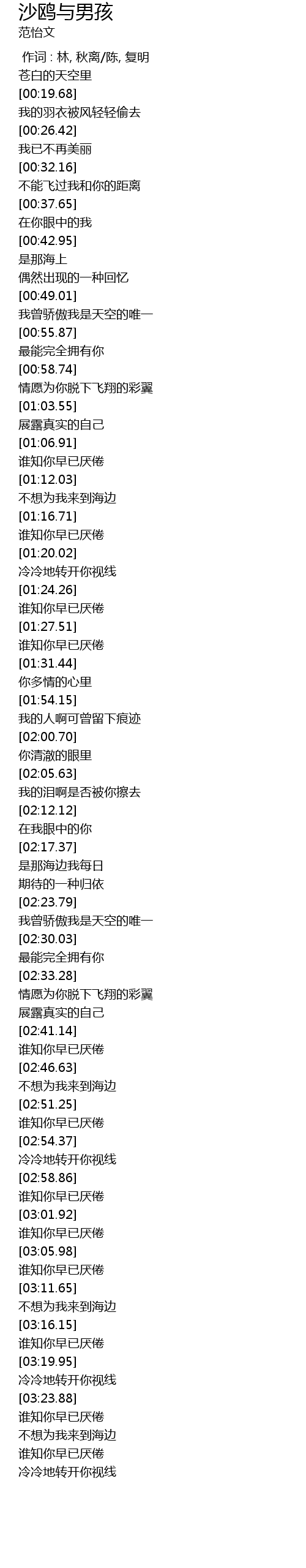 | [00:00.00] | 作词 : 林, 秋离/陈, 复明 |