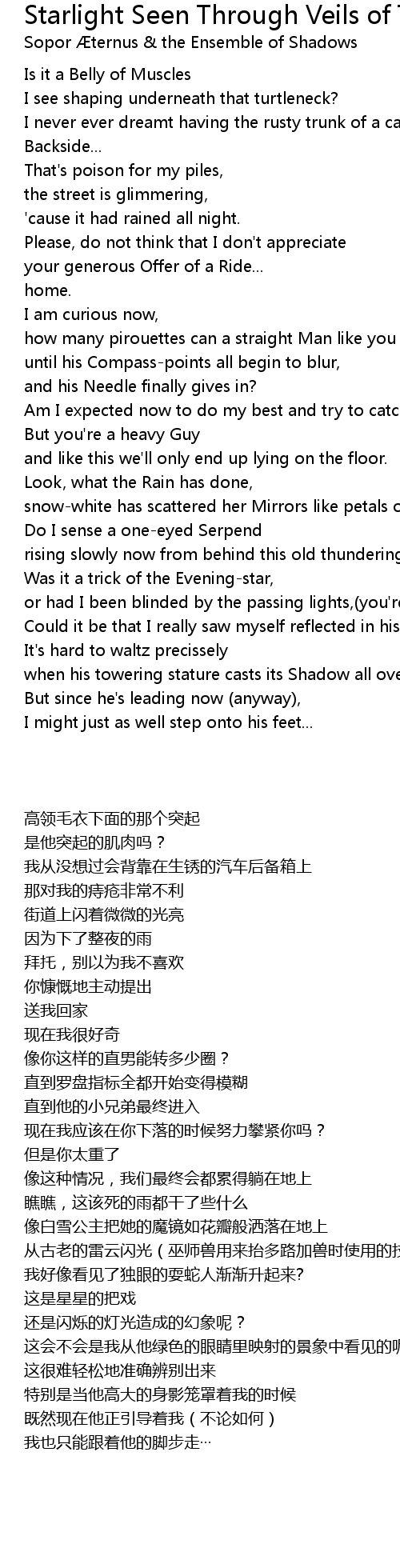 [05:34.17] Could it be that I really saw myself reflected in his green-grey Eyes?