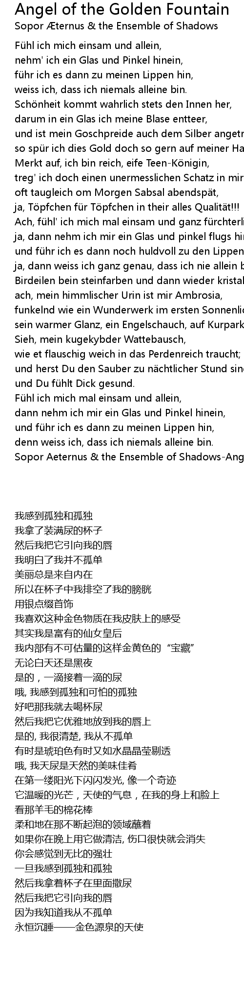 | [04:50.89] | Sopor Aeternus the Ensemble of ShadowsAngel of the Golden Fountain |