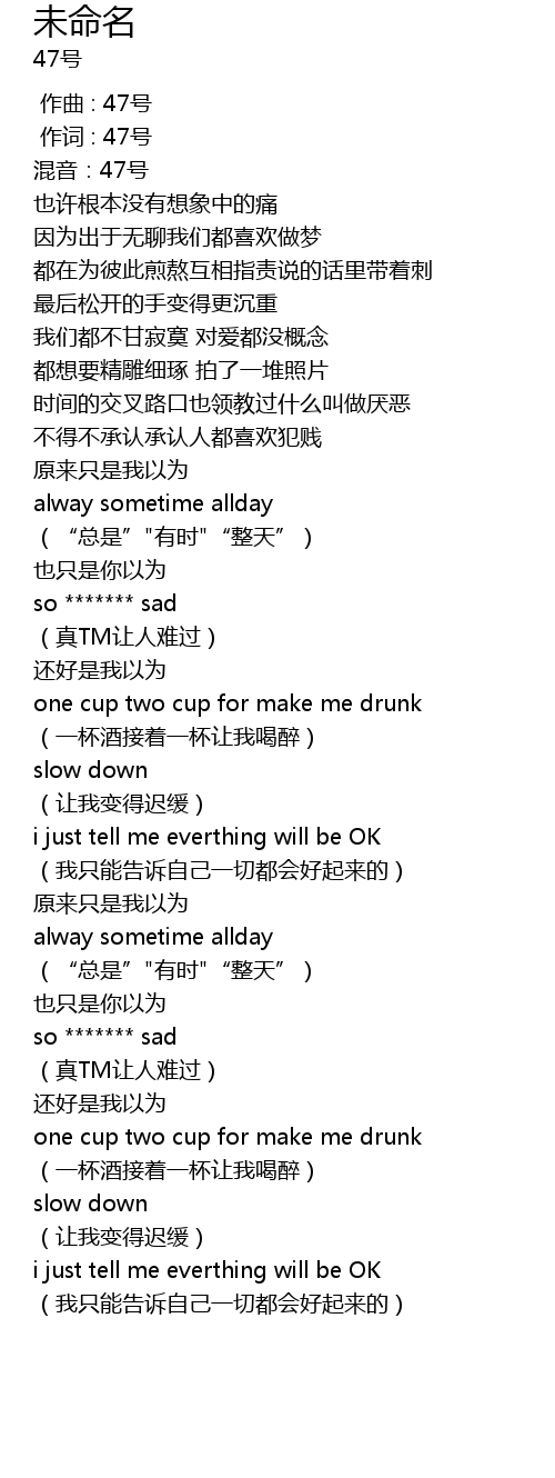| [00:45.912] | 不得不承认承认人都喜欢犯贱 |