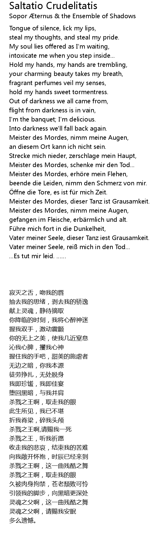 | [03:52.50] | Vater meiner Seele, dieser Tanz iest Grausamkeit. |