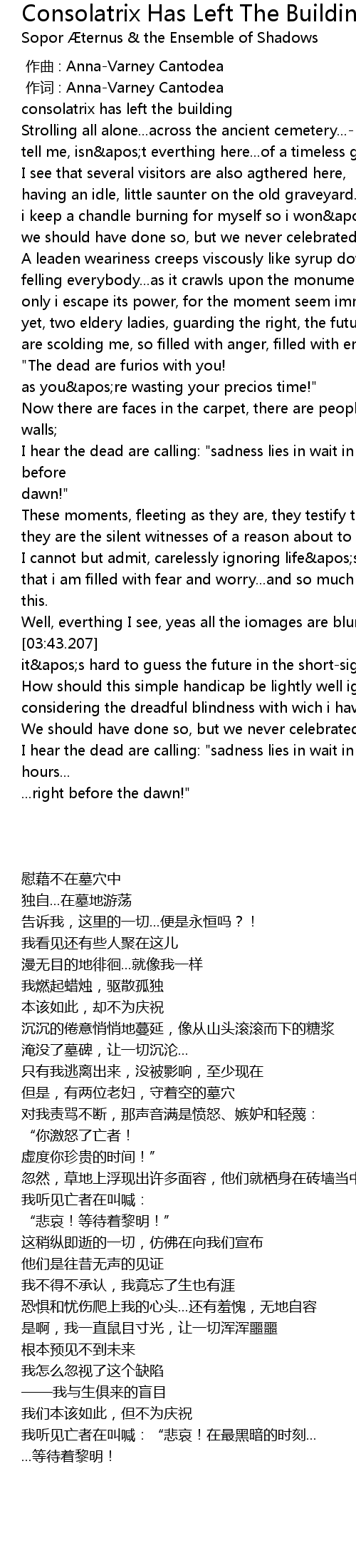 | [04:09.506] | I hear the dead are calling: "sadness lies in wait in the darkest hours... |