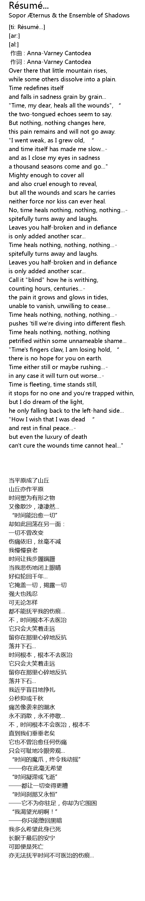 | [00:00.00] | zuò qǔ : AnnaVarney Cantodea |