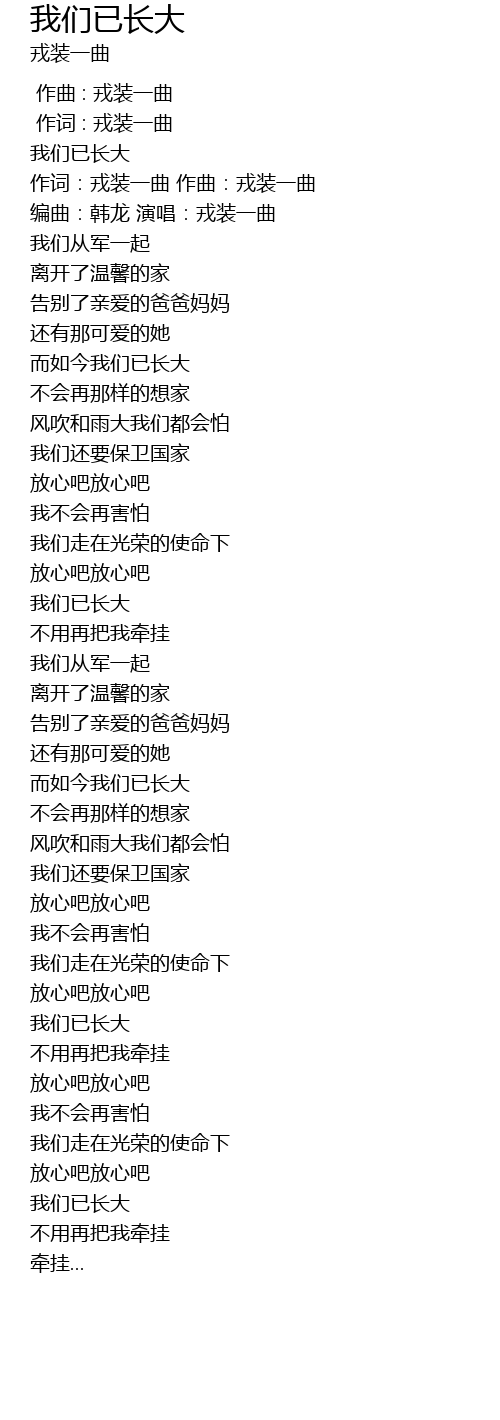 | [00:02.62] | wǒ men yǐ zhǎng dà |