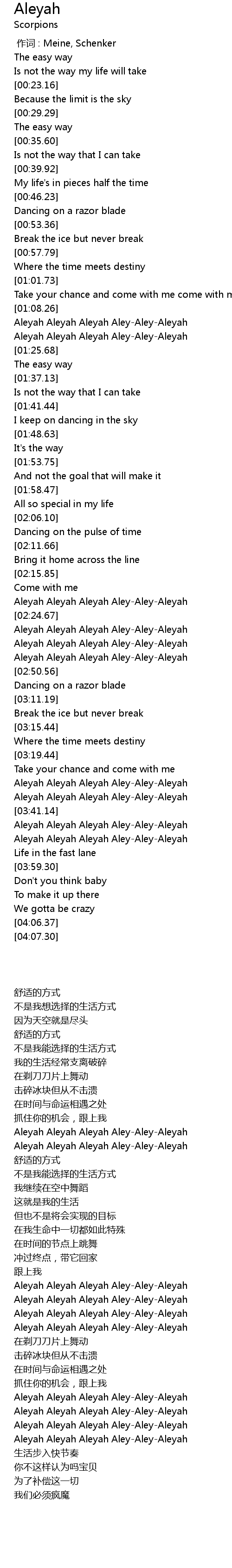 | [03:41.71] | Aleyah Aleyah Aleyah AleyAleyAleyah |