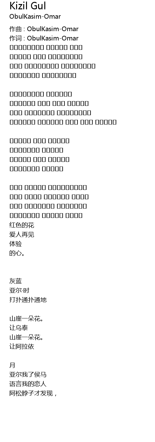 | 作词 : ObulKasim-Omar | |